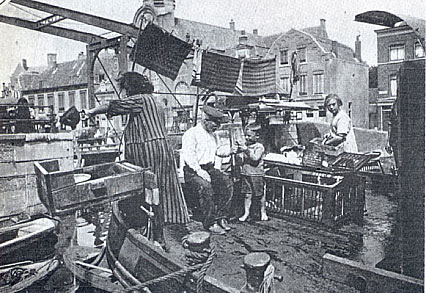 Met dit bootje worden pakketjes bezorgd via de kanalen en rivieren van Nederland. De familie kan er nog maar nauwelijks van leven.